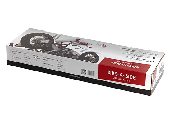 Positionnez votre moto au-dessus du chariot Bike-A-Side et soulever là en toute facilité et en toute sécurité, grâce à son levier adapté.