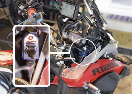 Le chargeur portable 3 300 mA Double USB, avec connecteur coudé à 90° qui s’adapte à votre moto BMW et Triumph – le choix populaire des motards BMW !