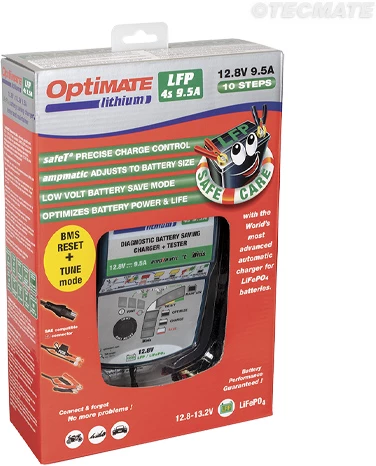 OptiMate Lithium Select, le chargeur de batterie professionnel le plus rapide pour les batteries 12.8V/16V LiFeP04 / LFP pour vos motos performance / course, voitures ou bateaux avec la mode TUNE. – La solution ultime pour les batteries lithium pour la piste!