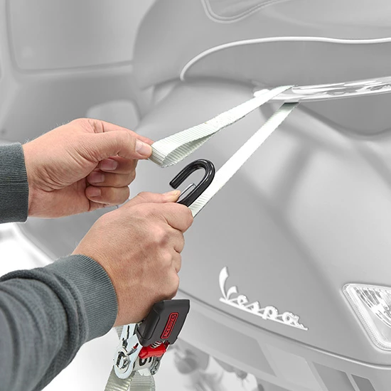 Avec ce kit vous pourrez sangler l’avant et l’arrière de votre scooter.