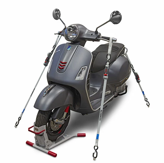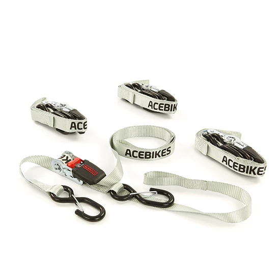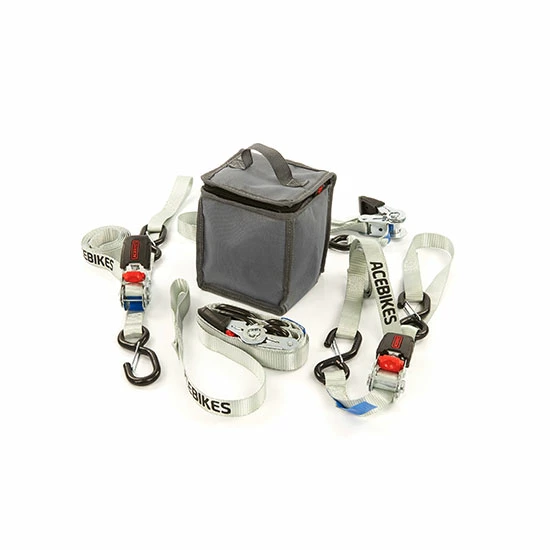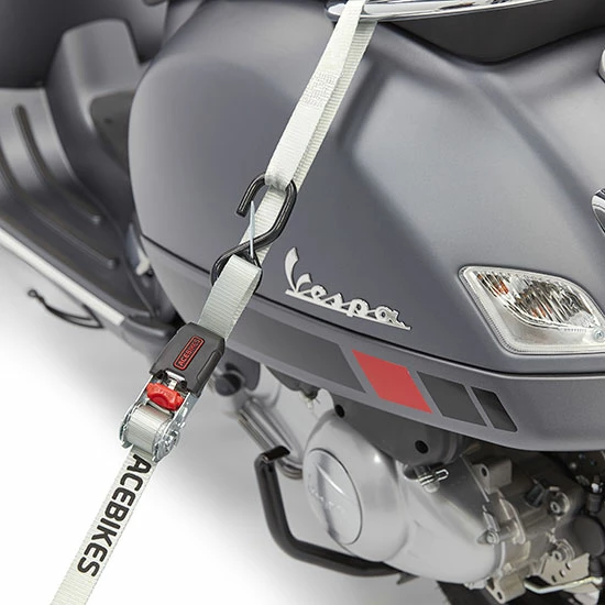 Le set de sangles d’arrimage Ratchet Kit Scooter d’Acebikes est parfait pour sécuriser un scooter ou même une moto pendant le transport.